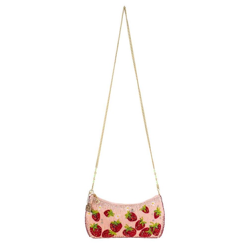 - Sweet and Juicy Design: Mary Frances Strawberry Fields Beaded Crossbody Clutch Handbag adds a sweet and juicy touch to your wardrobe. The fiery red, beaded strawberries on a sparkling pink backdrop create a visually striking and delightful design that's on fire.