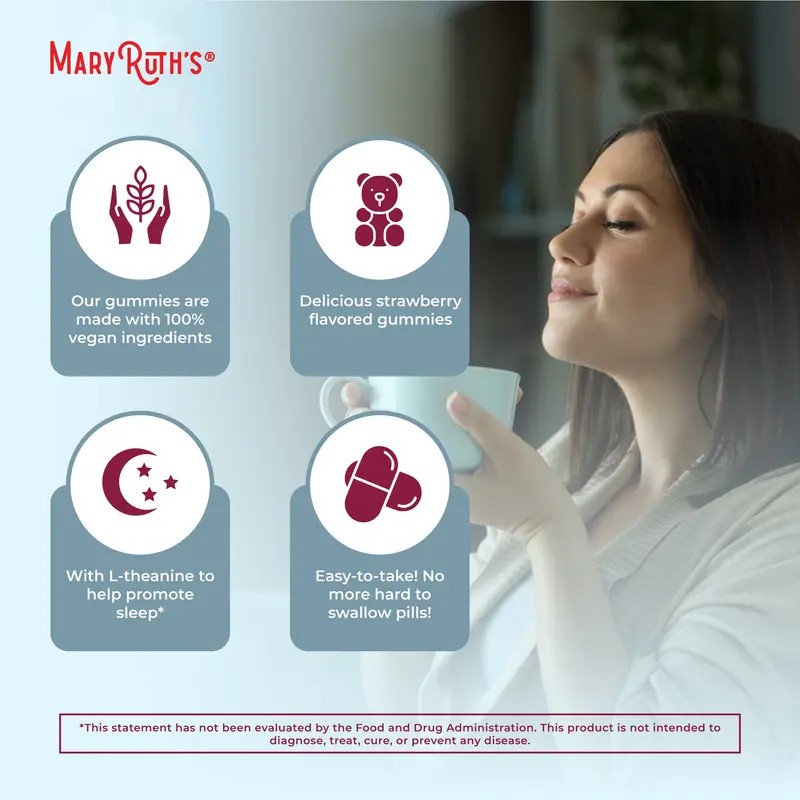 MaryRuth’s Melatonin-Free Sleep Gummies – Sugar-Free Vegan Stress & Relaxation Support with L-Theanine, Lemon Balm & Chamomile – 60 Count