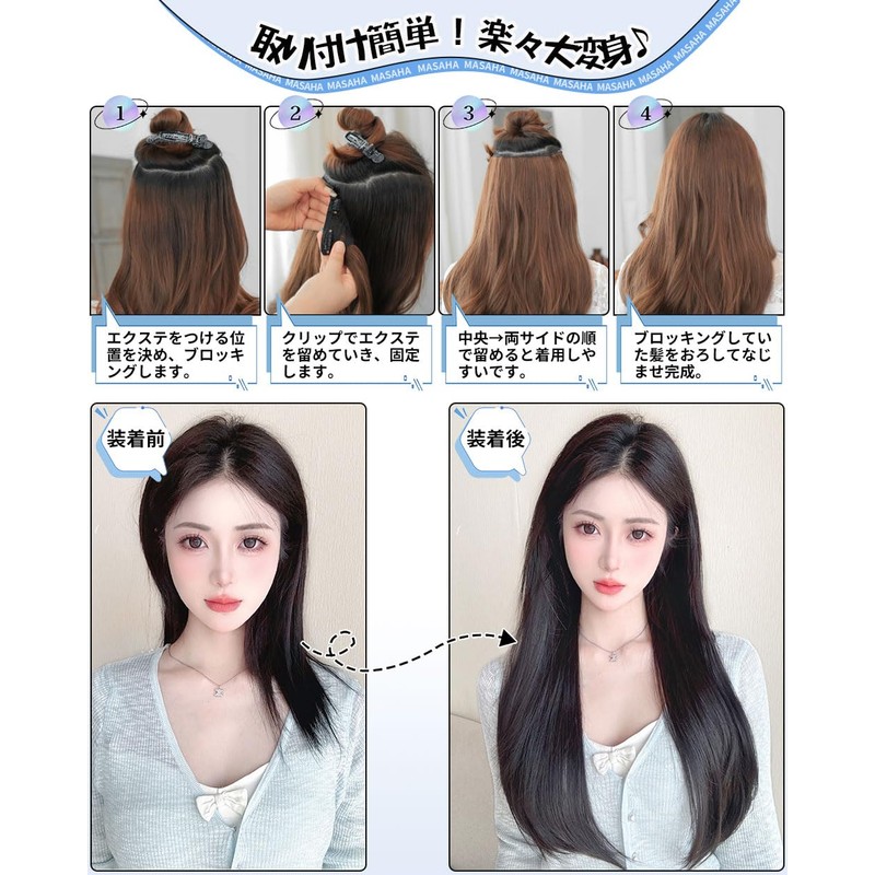 MASAHA Extensions One Touch Collar Wig, Partial Wig, Extension, Long Straight, Inner Winding, Hairpiece, Volume Up (Dark Brown, 17.7 inches (45 cm)