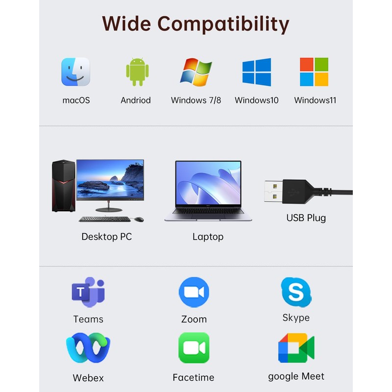 - 【Enjoy All-day comfort】The usb headset with microphone for pc is designed for ultimate comfort! Made with premium soft, breathable protein memory foam ear cushions, it prevents heat and sweat buildup. The adjustable, retractable headband fits most head sizes. Weighing just 5 ounces, it's lightweight enough for all-day wear without any pressure or discomfort