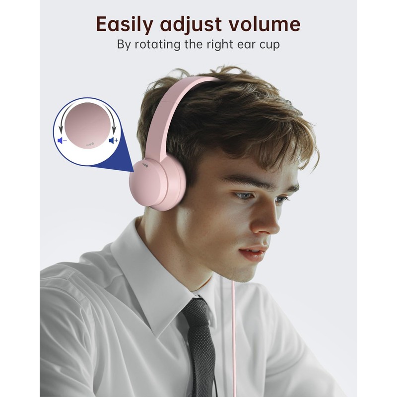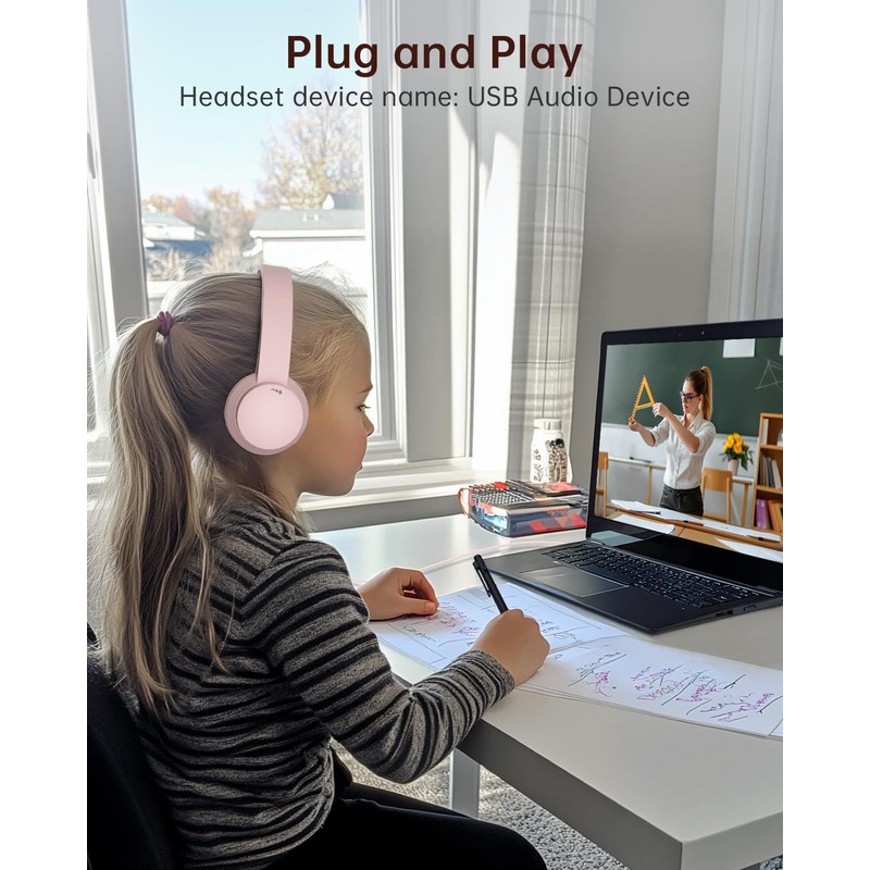 - 【USB A Connection & Easy Operation】This pink headphones for computer is plug-and-play, letting you easily adjust volume by rotating the right ear cup and mute the mic by lifting it 90°. The 6ft cable design eliminates wireless signal delay, ensuring you enjoy lag-free audio on your PC, laptop, tablet, Mac, iOS, and other USB A devices
