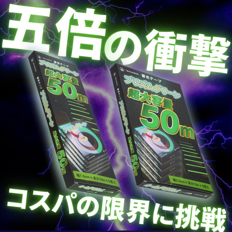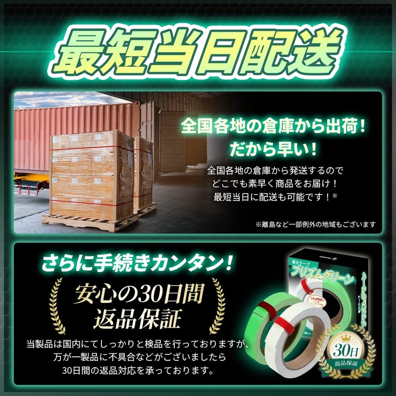MASANOS Glow in the Dark Tape, Prism Green, Width 4.3 x 32.8 ft (1.0 x 10 m), Glow Tape, Glow Tape, Luminous Tape, Luminous Sticker, Luminous Tape, Power Outage Countermeasure, Glow in the Dark Tape