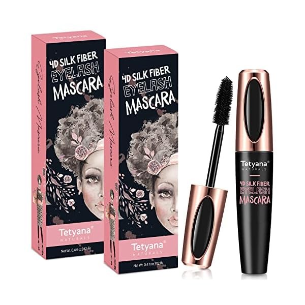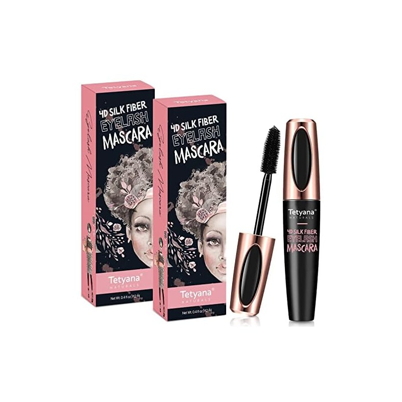 Mascara Black Volume and Length, 4D Silk Fiber Lash Mascara Waterproof, Smudge-proof, Hypoallergenic Formula for Your Longer, Thicker, Voluminous Eyelashes, 2 Pack