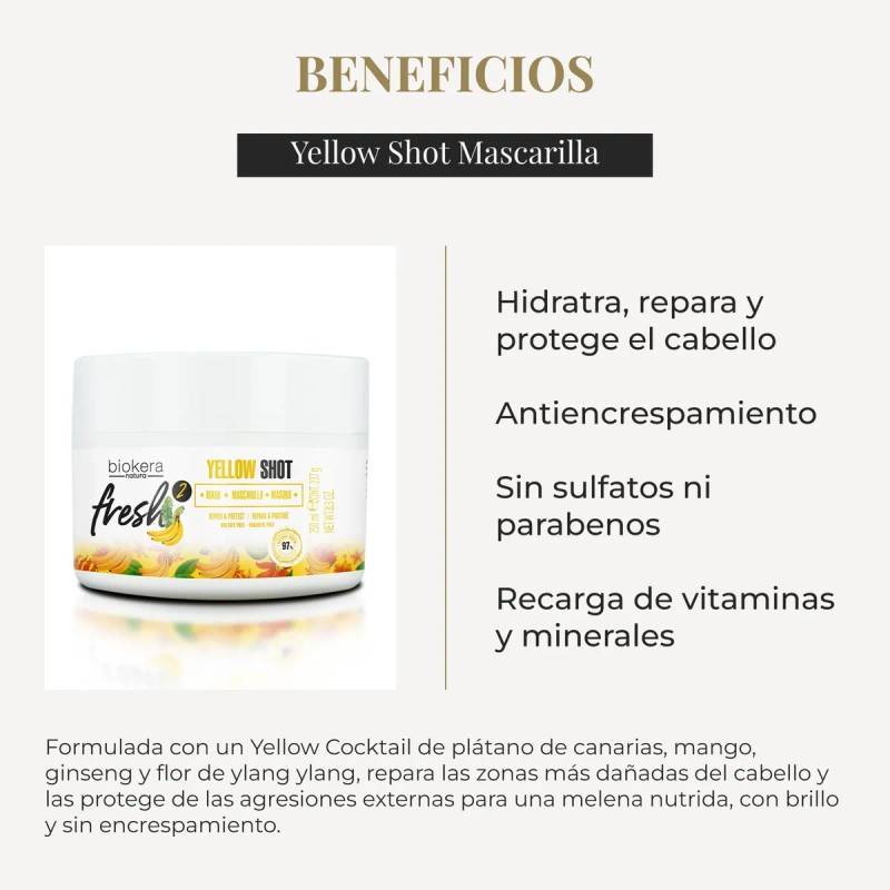 Descubre la magia de la naturaleza en cada hebra de tu cabello con la Mascarilla Capilar Salerm Deep Repair Biokera Fresh Yellow S. Diseñada para el cabello más exigente, esta terapia intensiva transforma el cabello sobreprocesado y dañado en una melena llena de vida y brillo. 🍌🥭