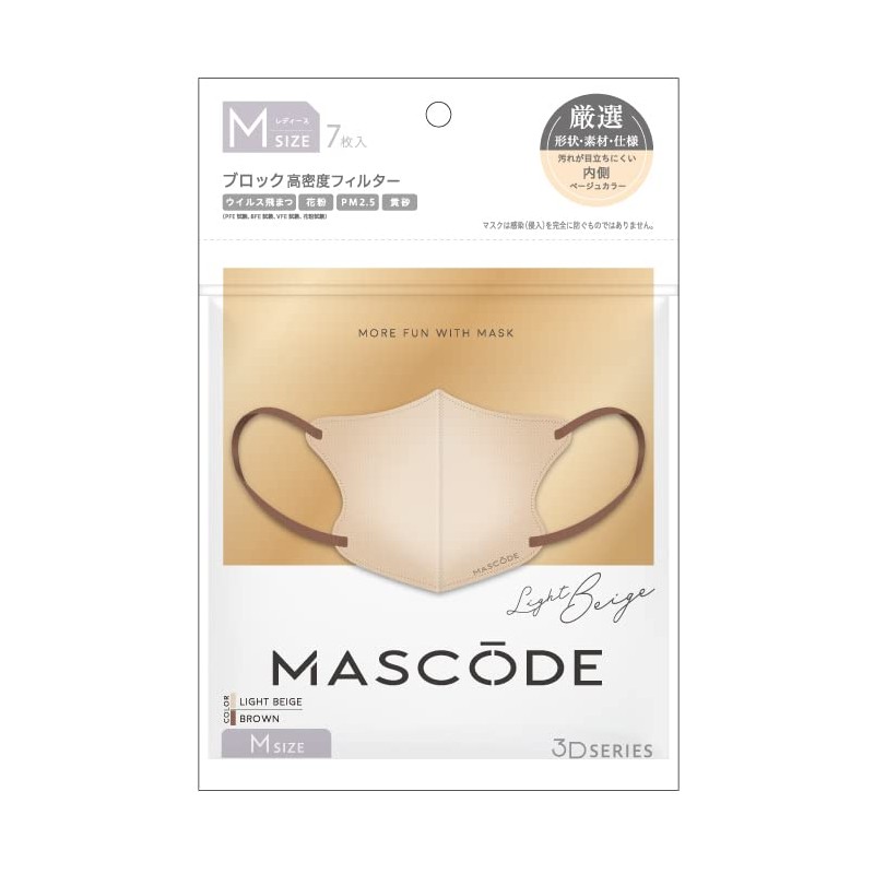 - MASCODE(マスコード)は「ファッション性」と「機能性」を兼ね備え、より快適で毎日使いたくなるマスクを提案します。 豊富なカラー展開と1人1人の顔にフィットし正面・横顔ともに美しく見える独自の立体形状を採用しスタイリッシュかつ個性を引き出す「ファッション性」を実現。 花粉や黄砂、ウイルス飛まつを徹底ブロック+息がしやすい独自の立体構造+長時間の使用でも耳が痛くなりにくい平ゴムを採用し毎日使いたくなる「機能性」を実現しました。