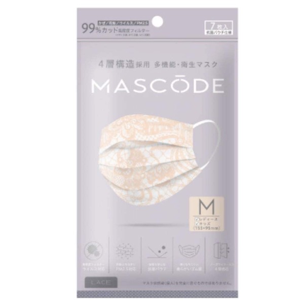 Mascode Non-woven Mask, Size M, Lace, Coral Pink