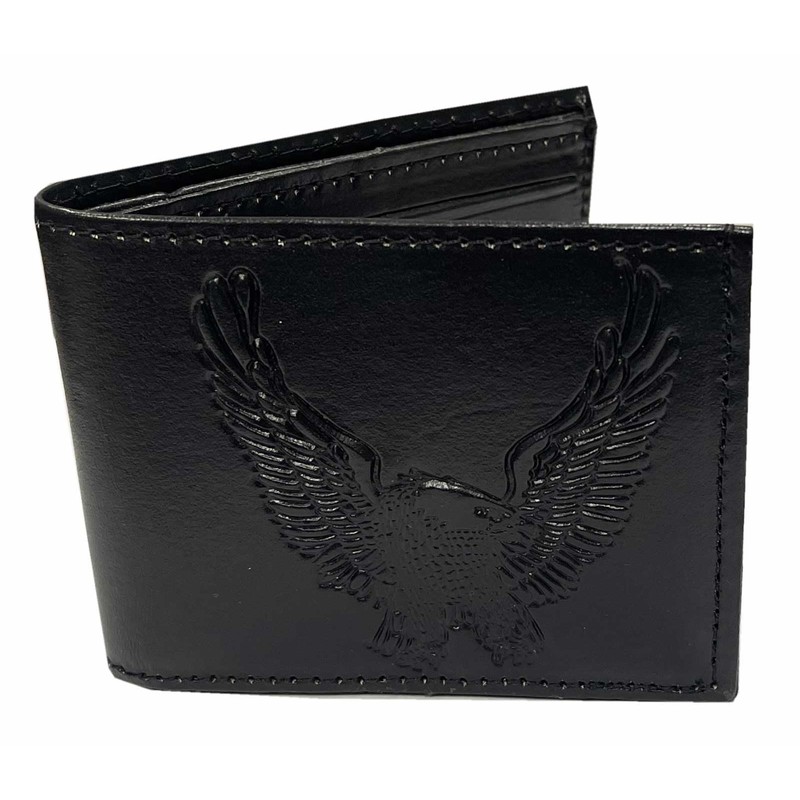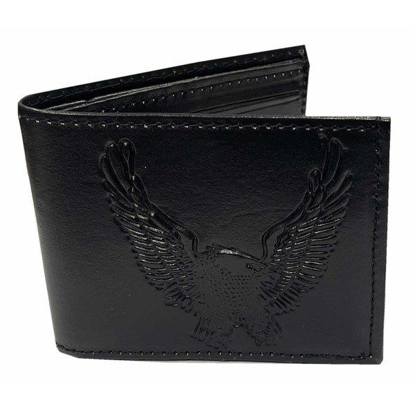 Mascorro Men's Open Wing Eagle Slim Billfold Leather Wallet - Black
