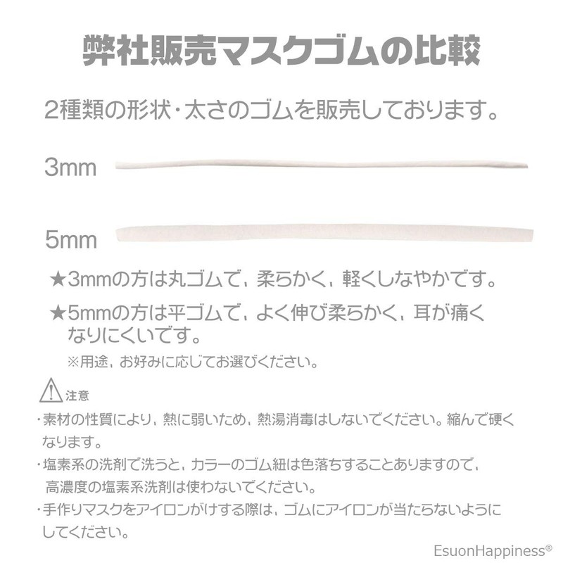 Mask Rubber Stopper Set, Flat Rubber, Thickness 0.2 inch (5 mm), Length Approx. 32.8 ft (10 m), 5 Colors, White