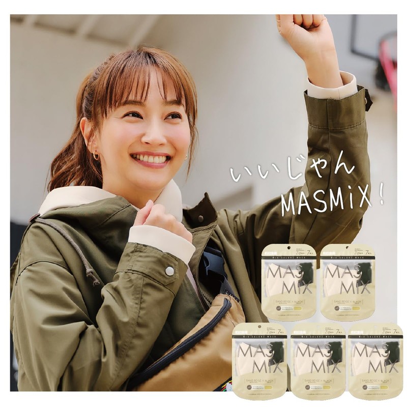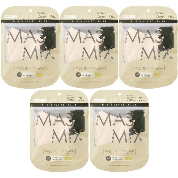 【まとめ買い】MASMiX バイカラーマスク 立体タイプ 35枚入(7枚×5個セット) サンドベージュ×ブラック