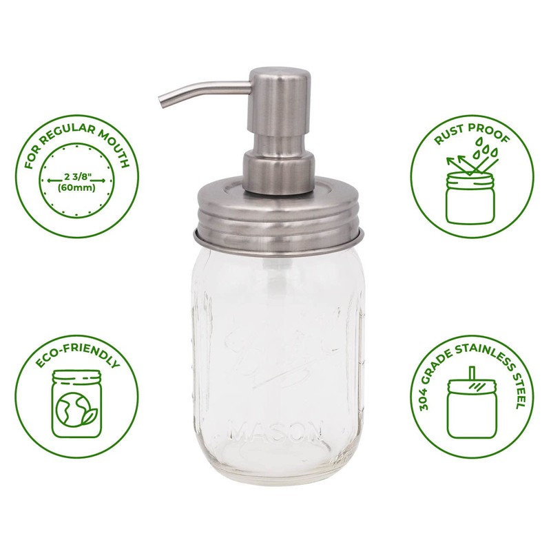 - HIGH QUALITY & RUST PROOF 》304 Stainless Steel lotion pump dispenser replacement lid will not rust. Upgrade your mason jar soap dispenser with our durable and rust-resistant stainless steel pump lid (6-month warranty)