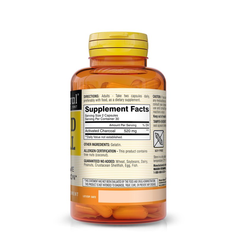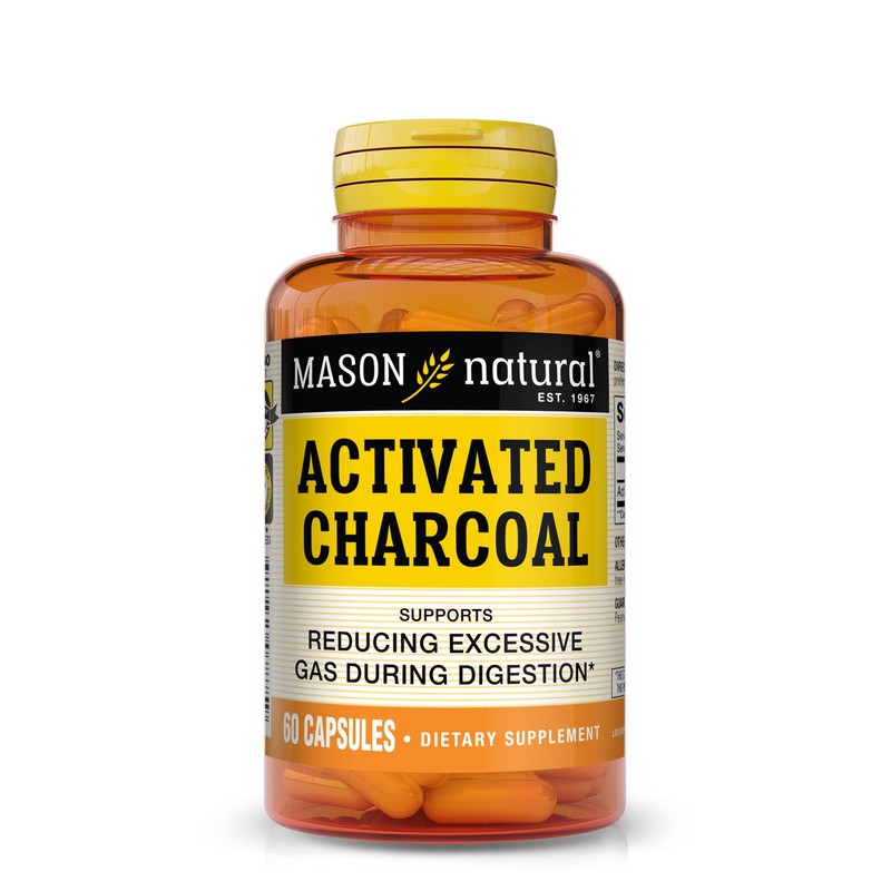 MASON NATURAL MASON NATURAL Activated Charcoal - Alleviates Gas and Bloating, Promotes Natural Detoxification, Highly Absorbent Supplement, 60 Capsules