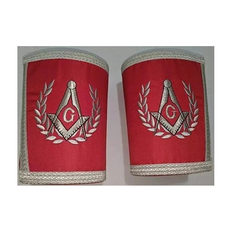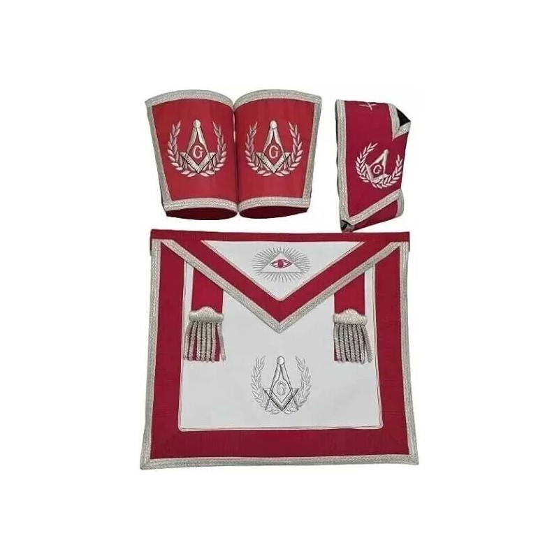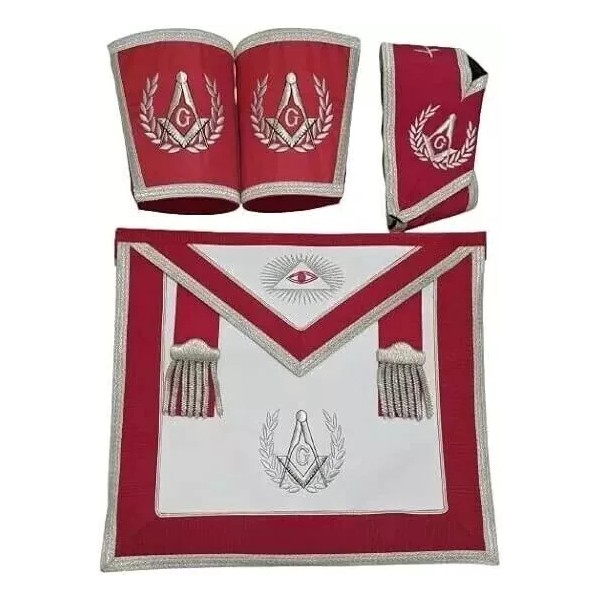 Masonic Blue Lodge Master Mason Red Apron Set Apron Collar Gauntlets (Cuffs)