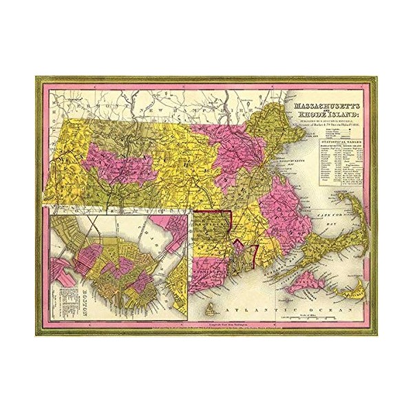 Massachusetts and Rhode Island - 1846 - Map Poster