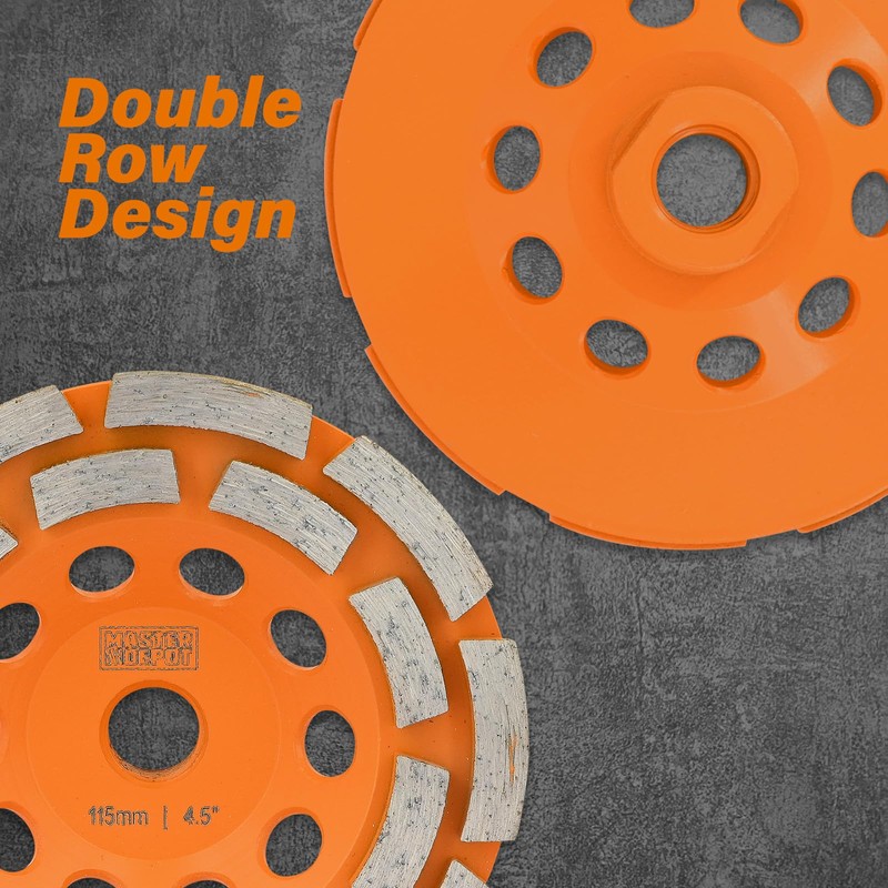 MASTER DEPOT 4.5" Diamond Concrete Grinding Wheel, 18 Double Row Diamond Cup Wheel, 5/8"-11 Arbor