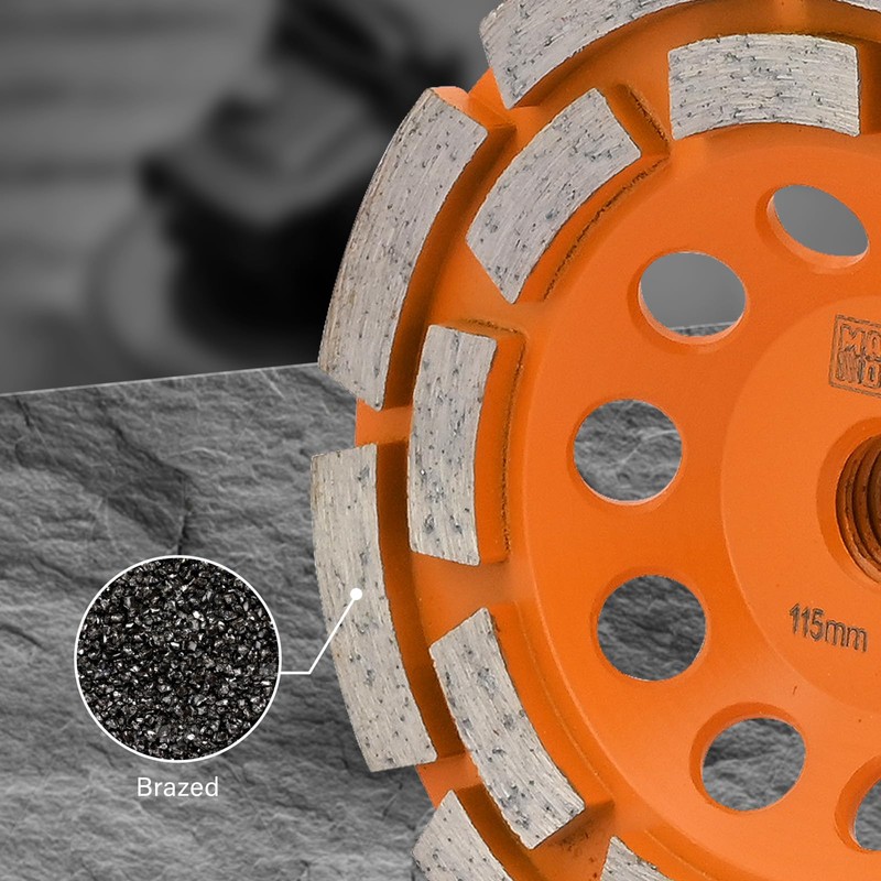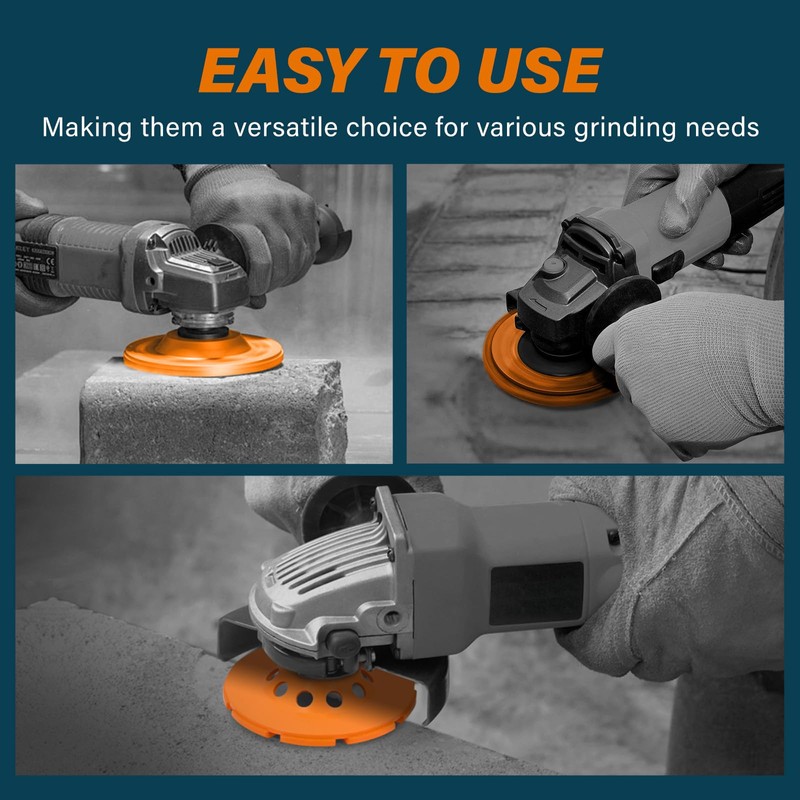 - Double Row Segments: 4.5" diamond grinding wheel is designed with 9+9 double row segments to provide a smoother and faster grinding experience. The high-quality diamond material offers excellent grinding and wear resistance for extended product life.