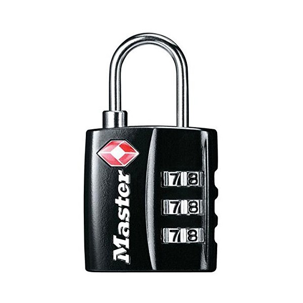 Master Lock 4680DBLK set your own combination; black finish, 1-3/16-inch wide body luggage lock-tsa accepted. Allows tsa screeners to inspect and relock baggage, without damaging the lock. Easy to set and reset. Unique side window for easy combination viewing.