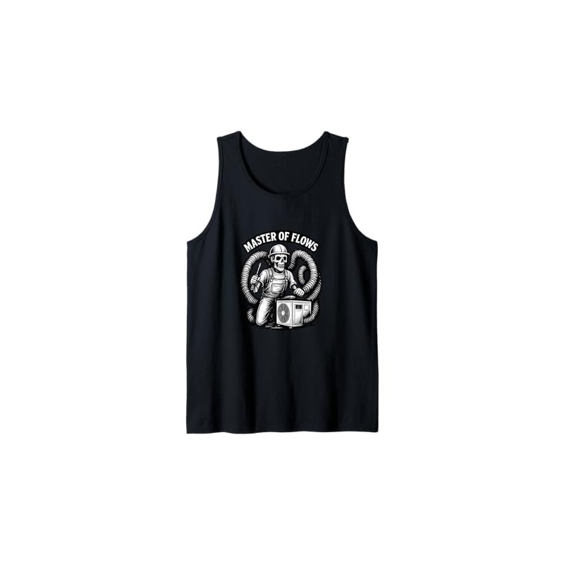 - Bold skeleton artwork with tools and ducts, perfect for anyone in heating, cooling, and airflow systems.