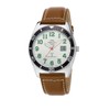 - Sporty radio-controlled watch with silver-coloured dial and light brown leather strap, water resistant to 5 bar