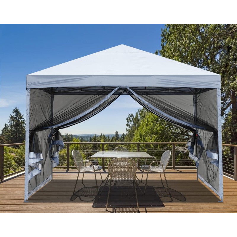 MASTERCANOPY Pop-Up Setup Outdoor Canopy with Netting Screen Walls (8x8, White)