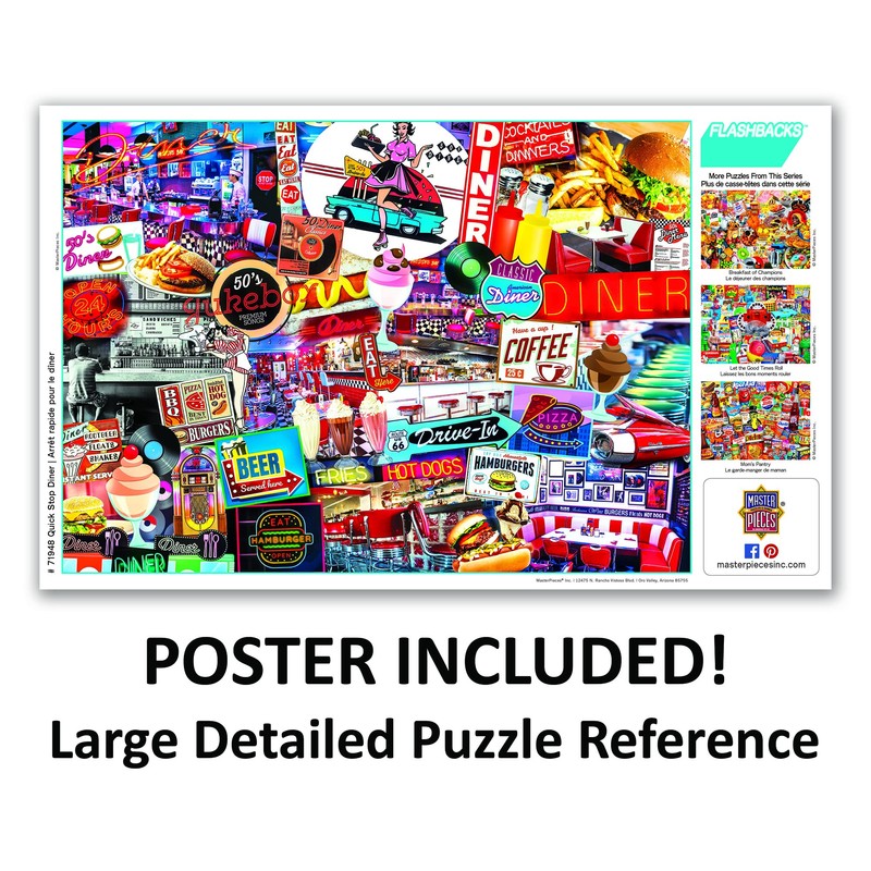 MasterPieces - 1000 Piece Jigsaw Puzzle, Quick Stop Diner, Fun for Adults, Family, Kids, Non-Glare Finish, 19.25" x 26.75"