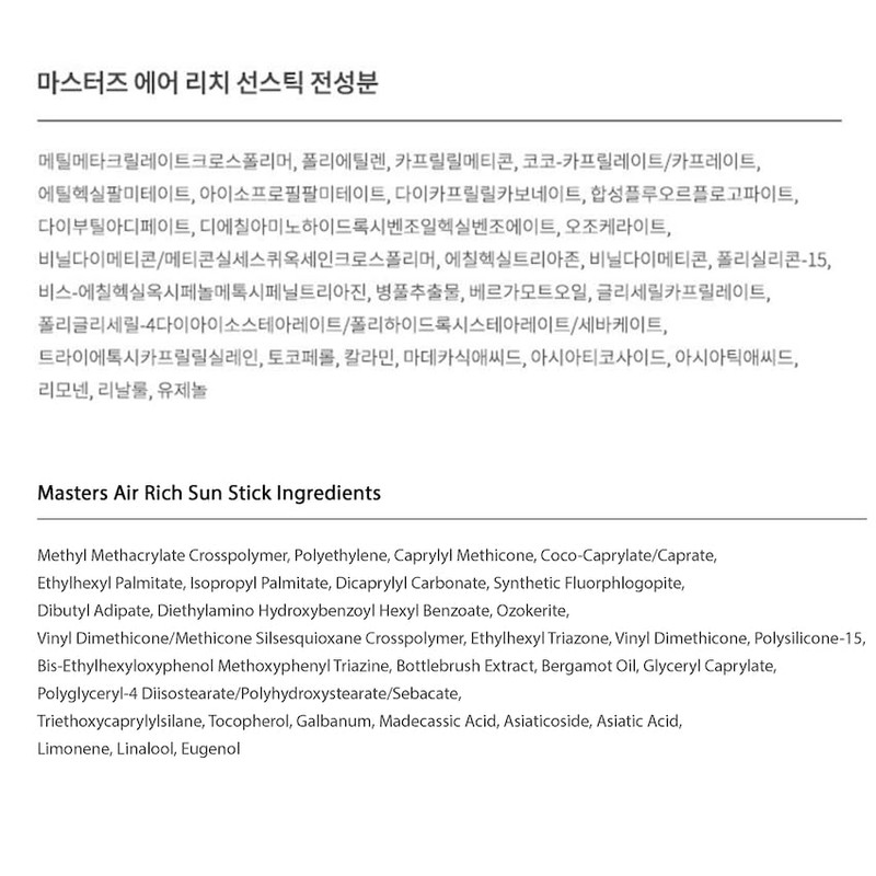 Masters Air Rich Sun Stick SPF50+ PA++++ 14g (0.49oz), Lightweight, Non-Greasy Sun Stick for Face, Water-Resistant