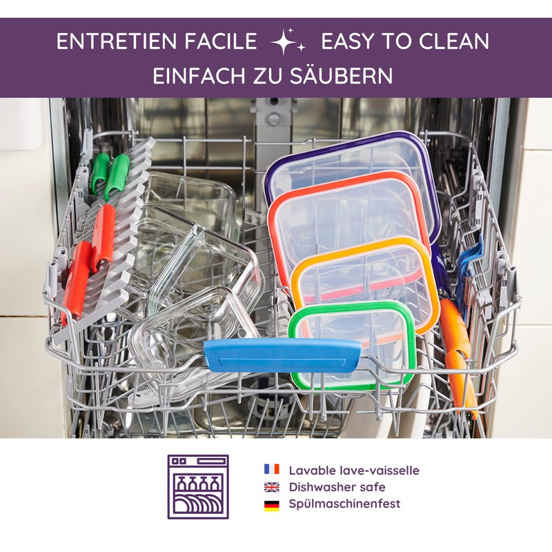 - KINDERLEICHTE PFLEGE: Die abnehmbare Silikondichtung der Frischhaltedosen ermöglicht eine kinderleichte Pflege von Hand oder in der Spülmaschine, wodurch die Boxen schnell gereinigt und oft eingesetzt werden können.