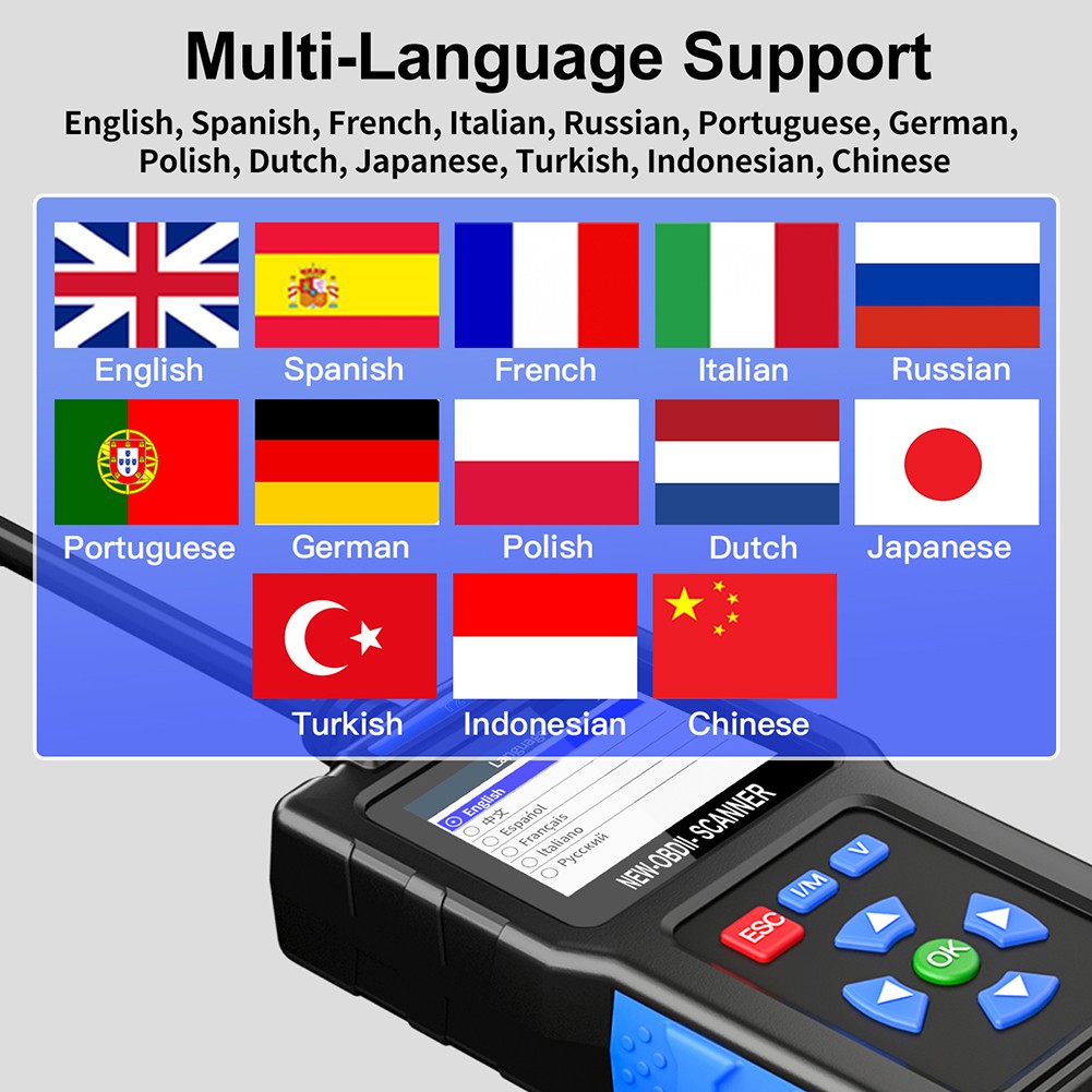 WIDE COMPATIBILITY - Recommended by YouTube star Scotty Kilmer on his channel. Works on most vehicles sold in the U.S. with a model year of 1996 or newer; Supports all OBDII protocols: KWP2000, ISO9141, J1850 VPW, J1850 PWM and CAN (Controller Area Network); Displays in English, German, French, Spanish, Finnish, Dutch, Russian and Portuguese; Requires no battery or charger as the unit is powered directly from the OBDII Data Link Connector in the vehicle.
