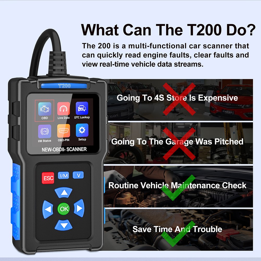 T200 Car OBD2 Scanner Code Reader Car Diagnostic Scan Tool Check Engine Fault