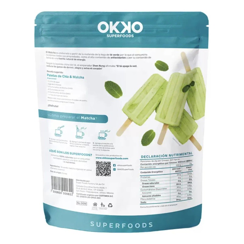 Matcha Organico En Polvo Okko 454g Sin Azúcar Ni Lactosa
