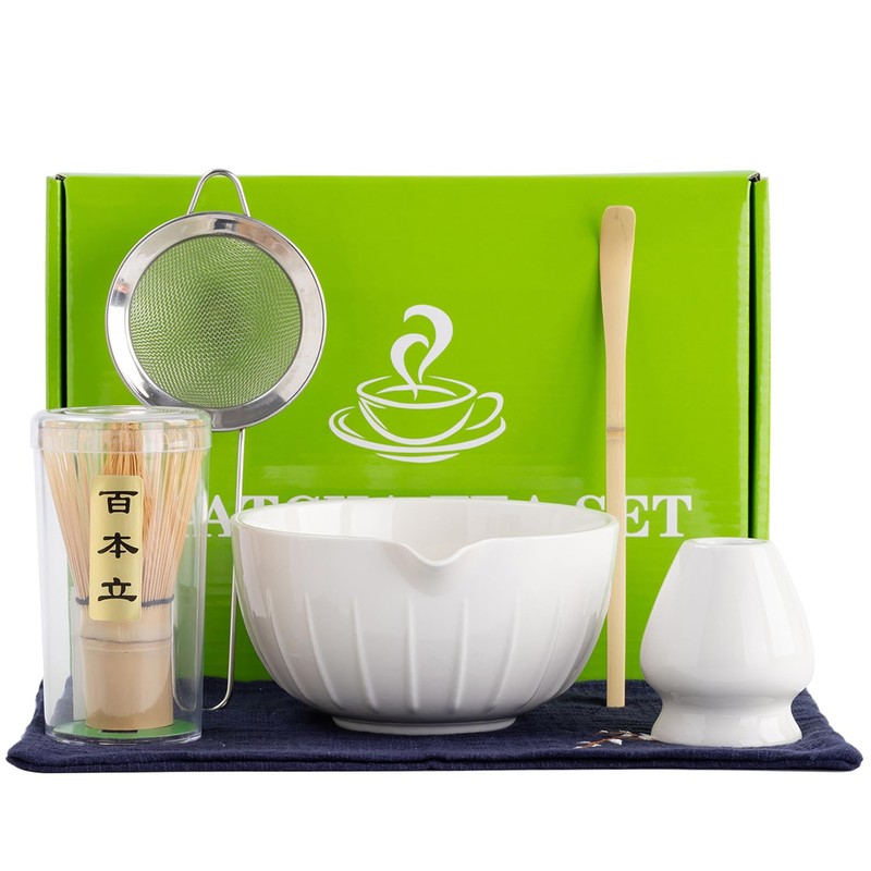 - HIGH QUALITY 6 PCS MATCHA WHIST SET: Our Complete Matcha Kit includes all the essentials: 1 * Matcha Bowl with Spout (Chawan) 530 ml/18 oz, 1 * Bamboo Matcha Whisk, 1 * Whisk Holder, 1 * Bamboo Scoop, 1 * Matcha Powder Sifter, 1 * Tea Towel. Each tool is precision-crafted for effortless elegance. Whether you're an experienced tea lover or a beginner, this kit provides everything you need for a traditional and refined matcha experience at home.