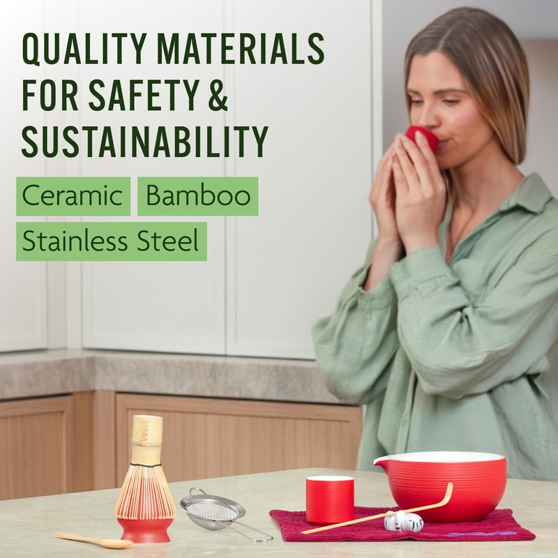 - SYMBOLIC DESIGN MADE TO LAST: This Japanese matcha set features ceramic, bamboo, and stainless steel materials while the symbolic red design infuses your ritual with joy, luck, and prosperity for an authentic at-home experience.