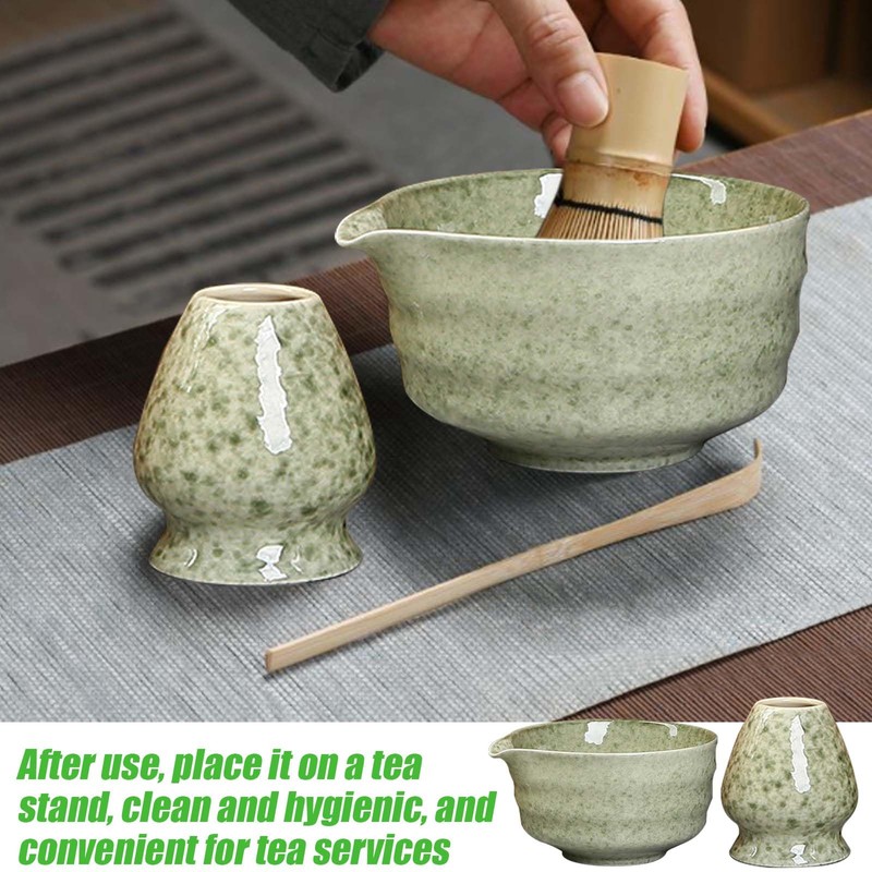 - Set includes: This 5-piece matcha tea set includes a matcha broom, two spoons and a matcha bowl green, a tea brush holder made of ceramic, which means you are directly equipped with several tools and save you the trouble of buying them separately. Our matcha tea bowl set does not contain matcha powder. This ceramic matcha set has been carefully crafted to make matcha a simple but stylish lifestyle, perfect for matcha lovers and beginners alike.
