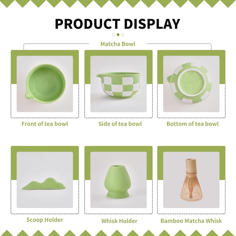 • Unique Design: The green grid design of the matcha bowl adds both personality and elegance, enhancing the artistic appeal of the entire matcha set. This matcha whisk set is not only functional but also serves as a decorative piece.