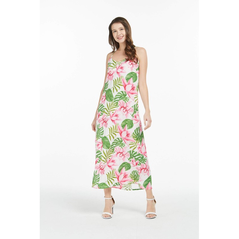 Matchable Family Hawaiian Luau Sweetheart Maxi Dress, Lotus and Orchid, Women, Large