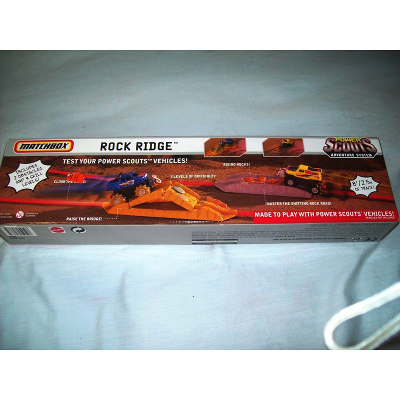 Tough and rugged adventure play sets put the Power Scouts 4x4s to the test! MATCHBOX POWER SCOUTS ROCK RIDGE Adventure World set with lots of manipulative features that allow boys to control the action. Kids can build multiple course combinations or use this set to connect to the world of the Power Scouts 4X4s. Put the Power Scouts vehicles to the test as they brave obstacles. You'll be amazed at how Power Scouts 4X4s power through and just keep going. Each set has flexible track to create lots of challenging combinations, or connect multiple the sets together to create a super Power Scouts world.