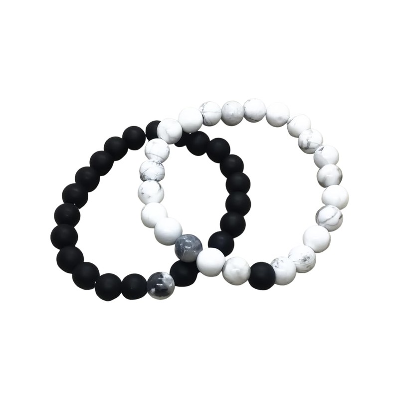 Matching Couples' Beaded Bracelets Set for 2 (Elastic, Marble White & Black) Miss Fit Boutique