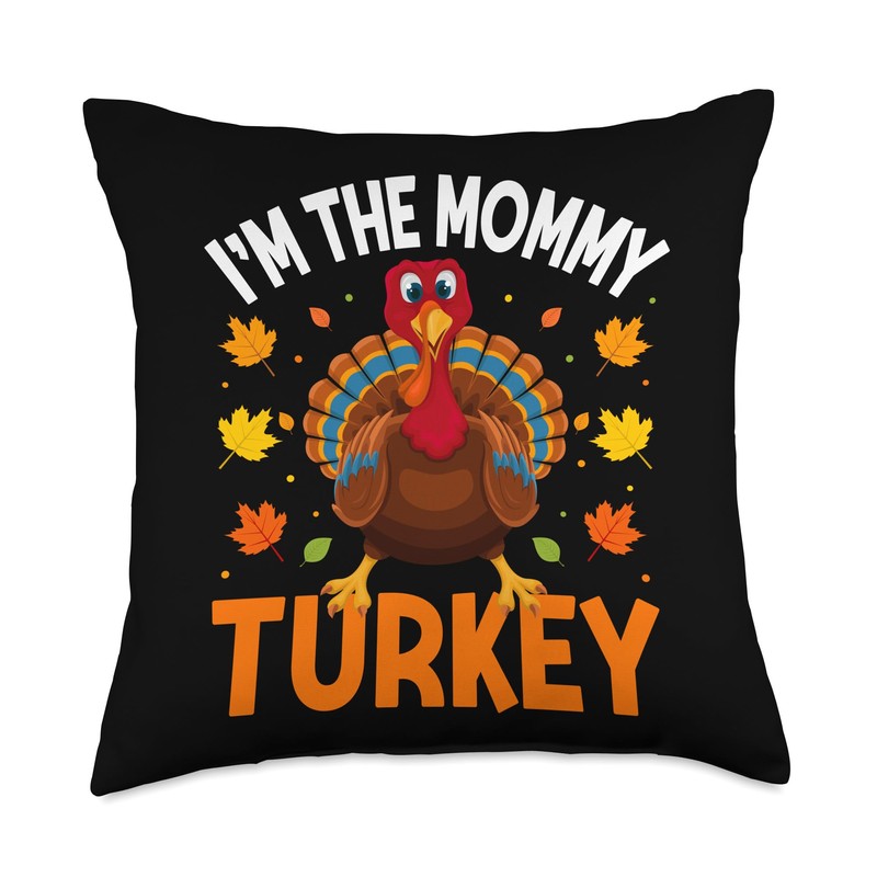 Matching Family Thanksgiving Turkey Costume I'm The Mommy Turkey Funny Family Thanksgiving Mom Throw Pillow, 18x18, Multicolor