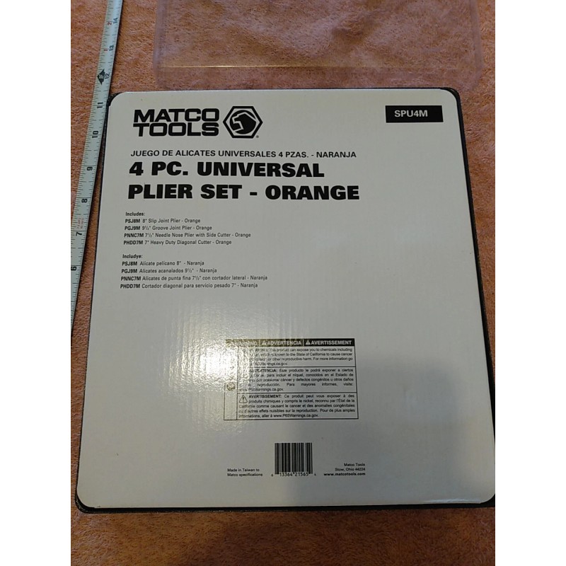Matco Tools 4-Piece plier set storage Tray only part number spu4m tray is in new condition complete with clear cover and cardboard insert for underside see photos for verification of condition Tray is sold as is no warranty no returns no tools included storage tray only