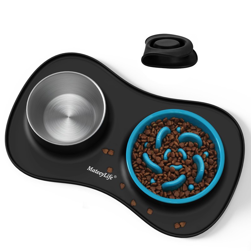 MateeyLife Dog Food Bowl Set 3 in 1, Dog Bowls Slow Feeder & Water Stainless Steel Bowl with Non-Spill Silicone Mat, Slow Feeder Bowls for Small, Medium, Large Breeds, Cat Feeding Dish to Anti-Choking