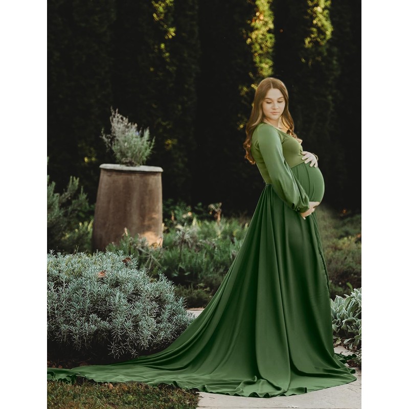 - Green maternity dress for photoshoot: The beautiful gown is a great for maternity photos outfits.Besides is a perfect pregnant gift choice for your pregnant wife, friends or yourself. Pregnancy maxi photography dress has bright colors, fashionable Bump styles, and comfortable wearing