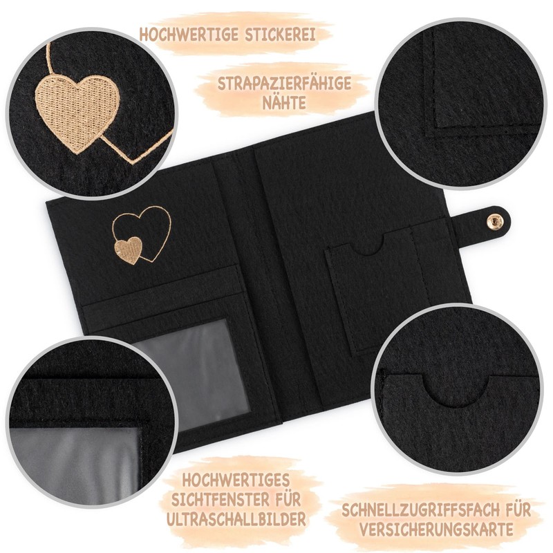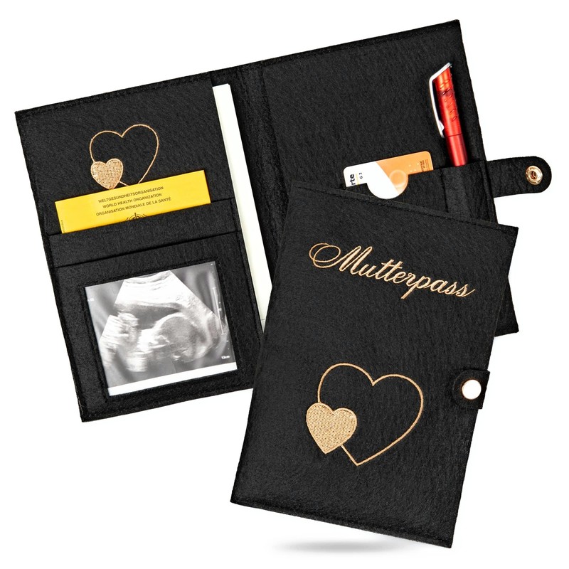 - With many compartments: for ultrasound images, health insurance card and vaccination certificate – with the perfect maternity log organiser you can keep an overview. The material made of robust felt and a press stud ensures safe storage