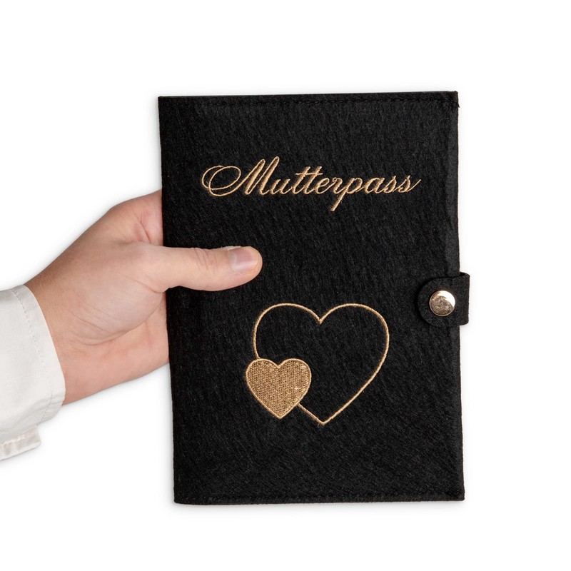 - With loving design: two beautifully embroidered hearts decorate the maternity log cover and provide a sign of the bond between mother and child. Available in two plain colours, either white or black.