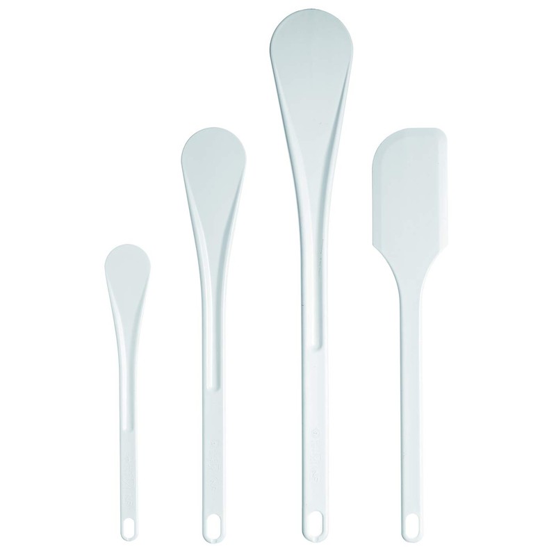 Matfer Bourgeat Exoglass kitchen spatula, 13-3/4"this Matfer Bourgeat kitchen spatula is made of Exoglass and it is heat resistant up to 430 F. It is dishwasher safe and can be sterilized. Length: 13-3/4" Weight: 2 oz material: Exoglass dishwasher safe heat resistant to 430 F model: # 113035 308848