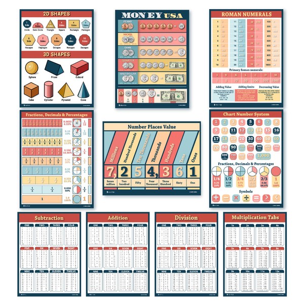 Math posters 10 educational classroom school kids charts (FIXED TYPOS version 2.0) Young N Refined (Glossy Paper 13x18)