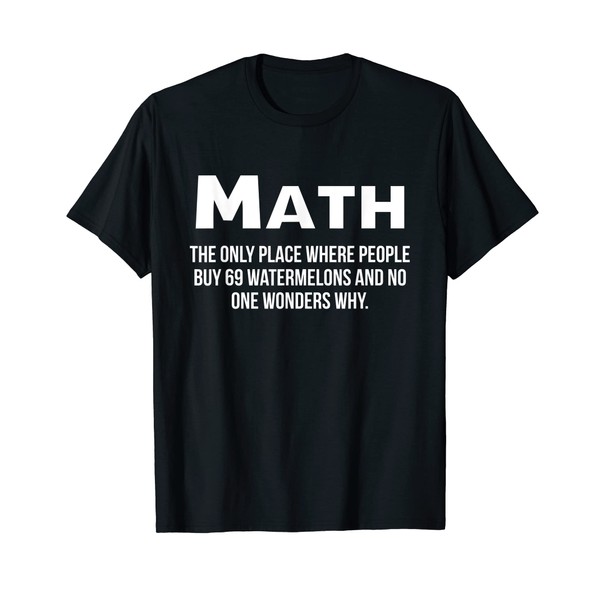 • Math The Only Place Where People Buy 69 Watermelons and No One Wonders Why. Hilarious funny & punny jokes for mathematics teachers professors tutors & algebra mentors as cool gift ideas. Awesome shirt for nerdy nerds & geeky geeks who are smart enthusiasts