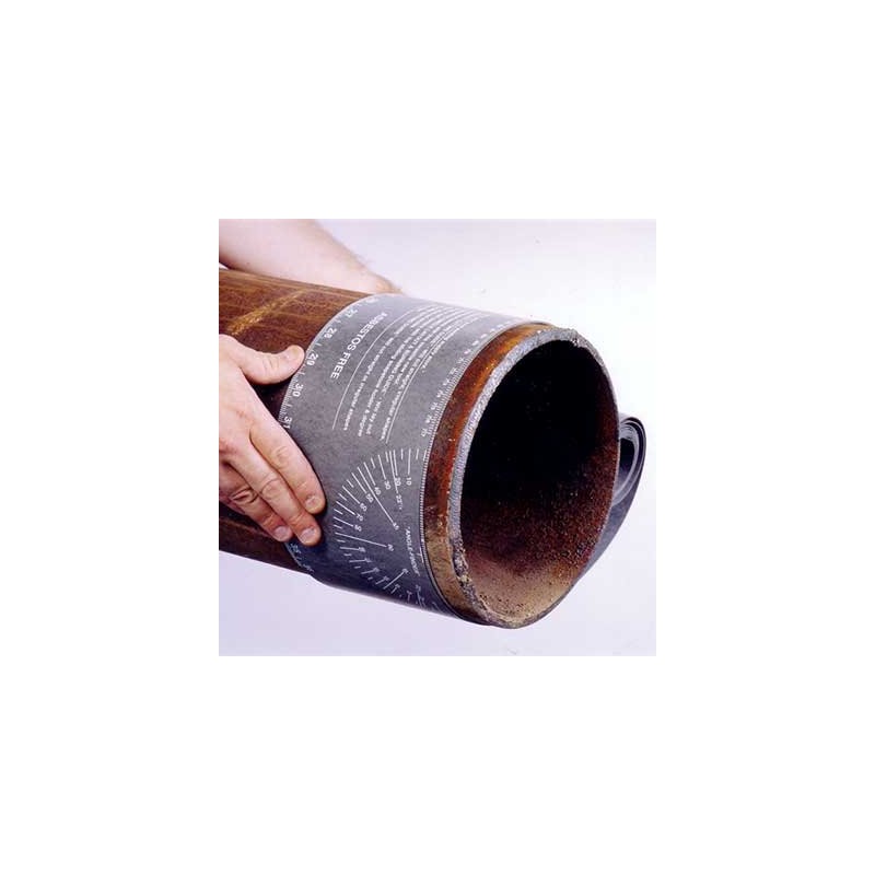 Wrap, 4" x 7' / 102 mm x 2134 mm pipe size 3-26 (76-660) Mathey Dearman Pipe Wrap has double-ruled edge so it is never upside down or backwards. The Wrap can be used as a straight edge to mark straight lines around the pipe and to mark angles for pipe elbows. The Pipe Wrap is constructed of highly abrasion and solvent resistant materials to last under heavy use. Pipe Wrap Includes: Table of tangents and straight edge Instructions for cutting elbows Sides marked in 1/8” (3.2 mm) increments to 36” (914 mm) Instructions for finding the length of an elbow 45-degree angle chart Degree markings