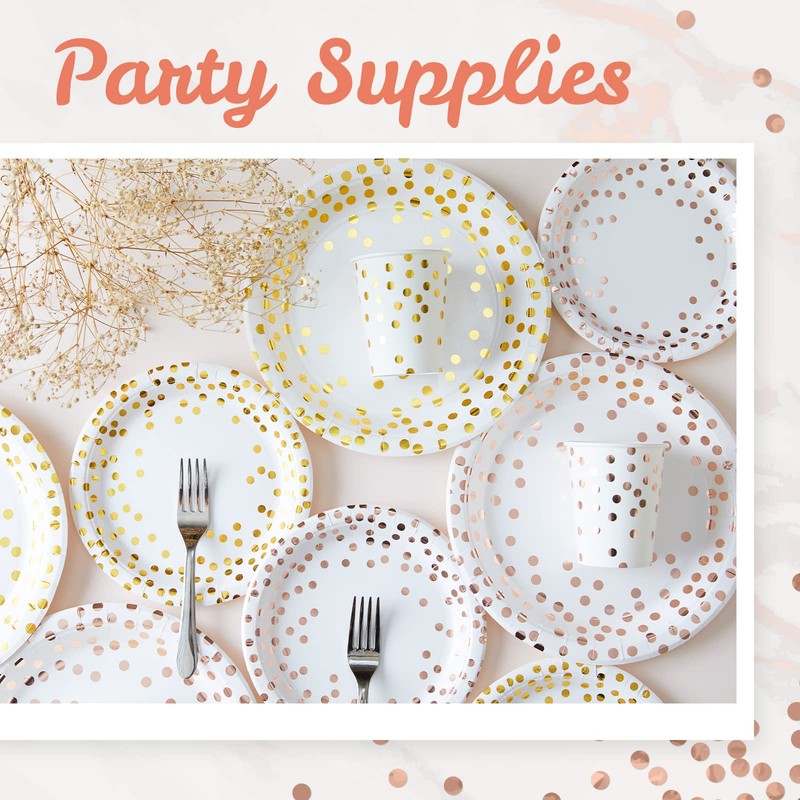 - Elegant Rose Gold Foil Design: Decorated in stunning, shimmering rose gold foil polka dots perfect for several themed celebrations!