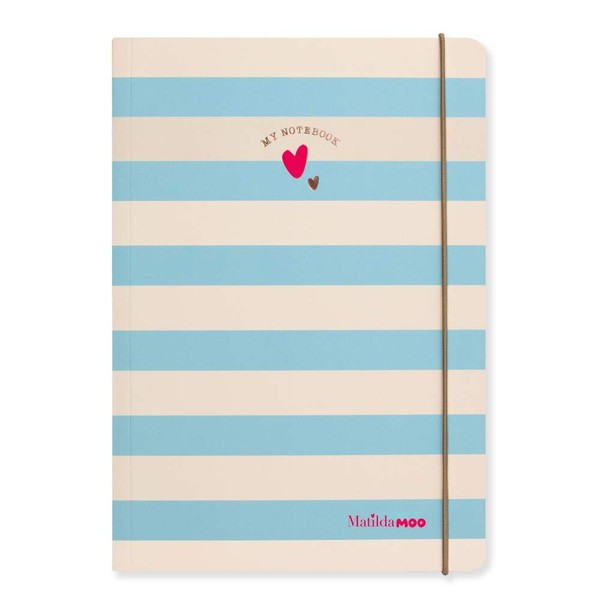 Matilda MOO Notebook - A5 Lined - Striped - Blue & Rose Gold