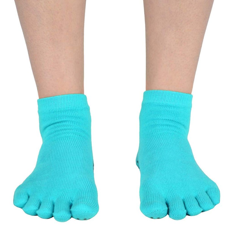 Mato & Hash Calcetines de yoga de 5 dedos con agarre completo, Azul scuba, S-M