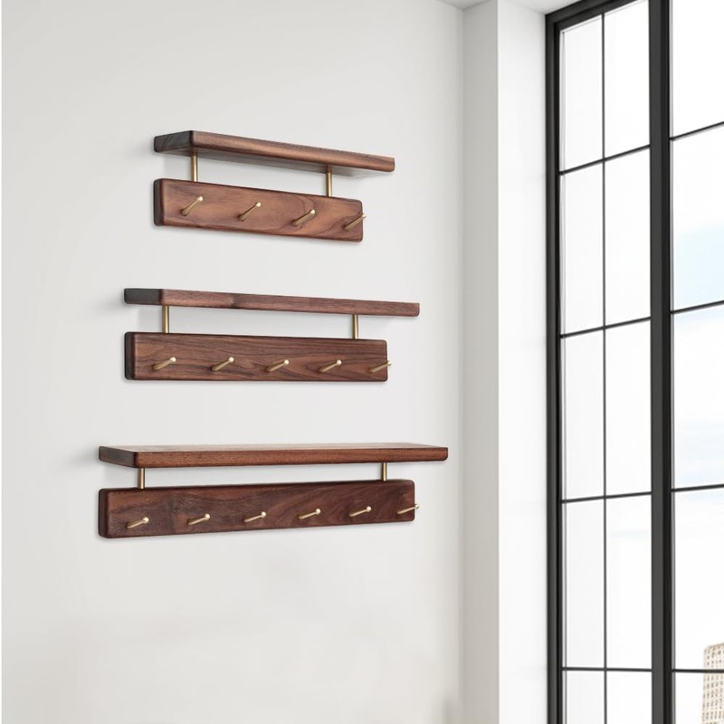 - Natural Material: The coat hooks wall mount is made of solid wood paired with brass hooks and coated with natural wood wax oil, suitable for various home styles